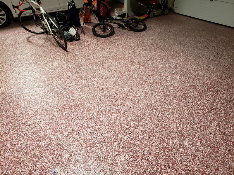 Epoxy coatings are a good option for a garage floor or industrial space. We use a commercial grade epoxy/urethane system. We diamond grind the concrete surface to ensure a proper mechanical bond. We can install the epoxy/urethane in a variety of colors. A colored flake broadcast can be added for variety also.
