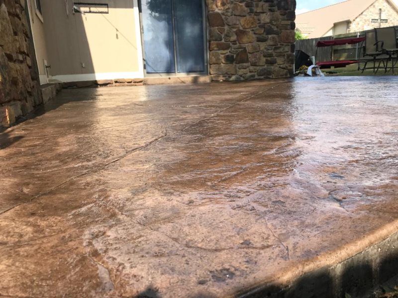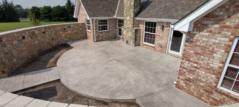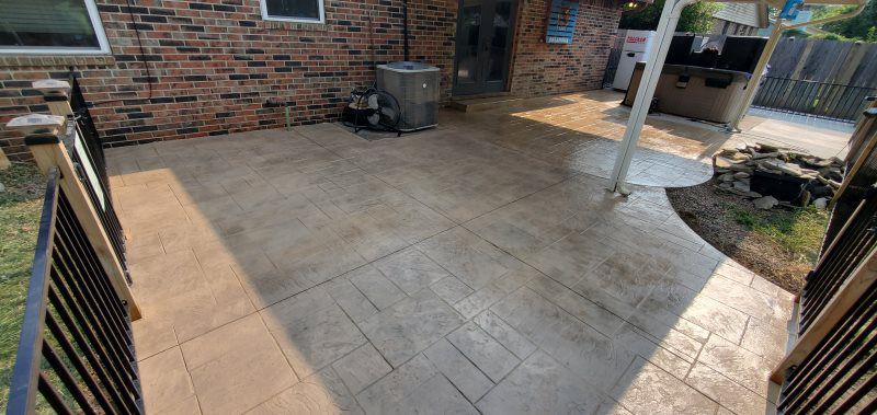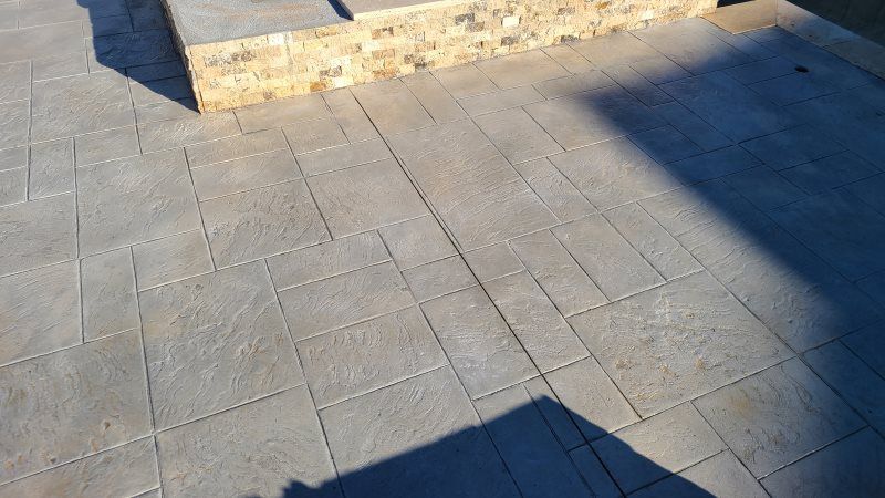 Stamped concrete is where a pattern is impressed into freshly poured concrete. Many colors and patterns are available that can simulate stone, tile, brick, wood, etc. Stamped concrete is often used on drives, walks, pool decks, patios, porches or entries. All of our concrete is 3500 psi.+ and steel reinforced.